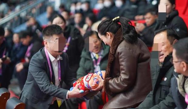 在比赛间歇期,佩通坦还接受了我国工作人员赠送的亚冬会吉祥物—滨滨和妮妮。