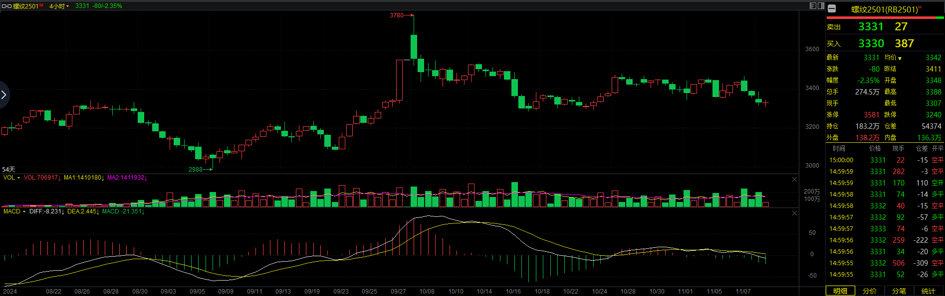 交易思路:螺纹钢激进3310附近接多