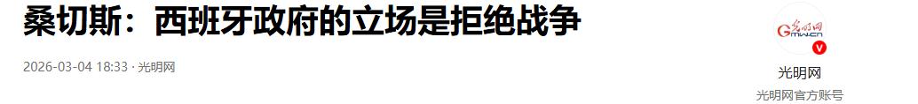 参考信息1:《桑切斯:西班牙政府的立场是拒绝战争》光明网2026.03.04