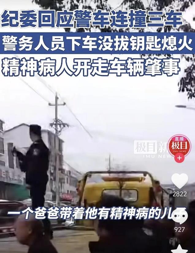 没想到一番调查后,平江县纪委的回复却令人啼笑皆非,过程离谱到电视剧都不敢这么演!平江县一名女工作人员告诉极目新闻的记者:“两个警察带着一个精神病人去精神病院做精神鉴定,就没有熄火,那个钥匙也插在上面,一个爸爸带着他有精神病的儿子,跑过来一看那个钥匙插在那里还没有取,那个儿子就冲上去把车开走了。”