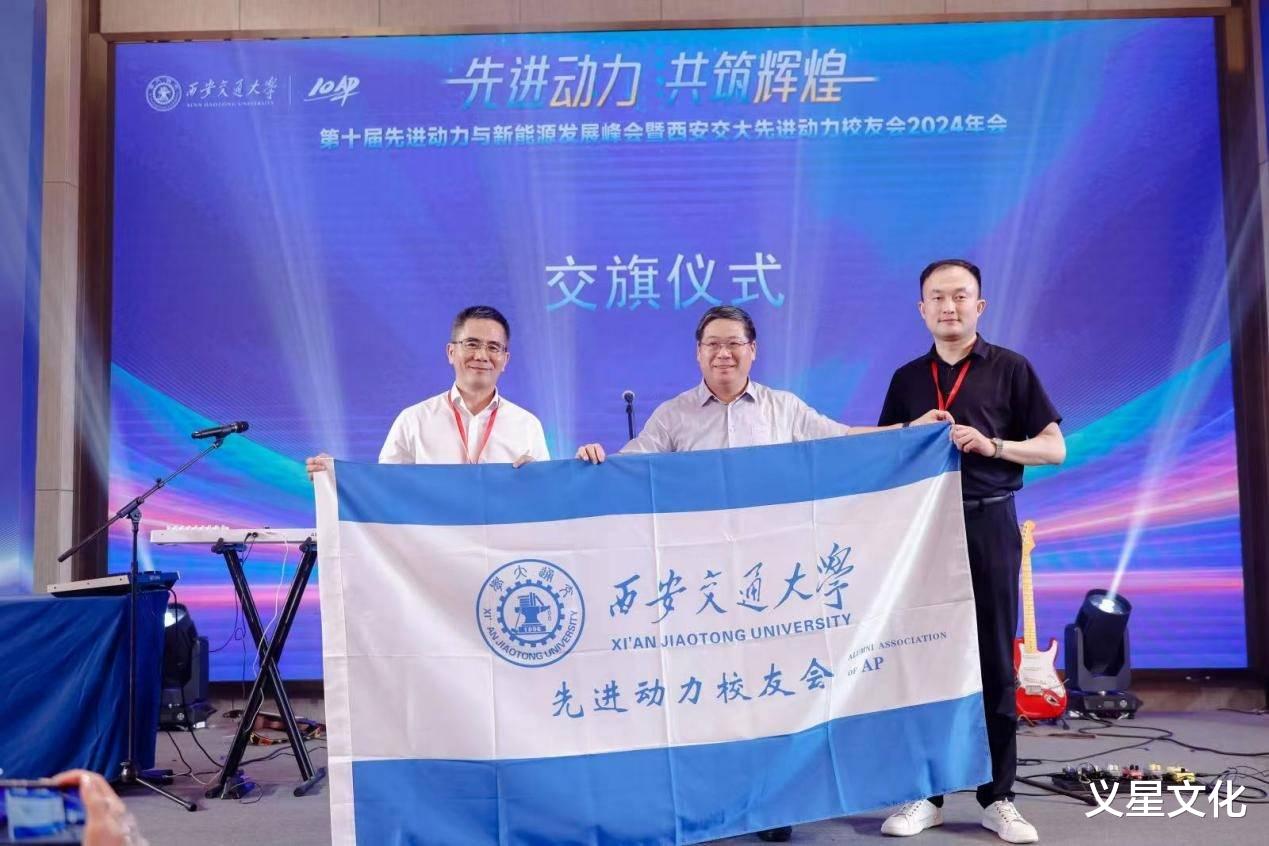 晚宴环节还举行了峰会承办方交旗仪式,经过申请和先进动力校友会讨论决定,第十一届先进动力与新能源发展峰会暨西安交大先进动力校友会2025年年会将于2025年8月第一个周六在苏州昆山举行,由校友企业昆山市易泰汽车科技有限公司承办。