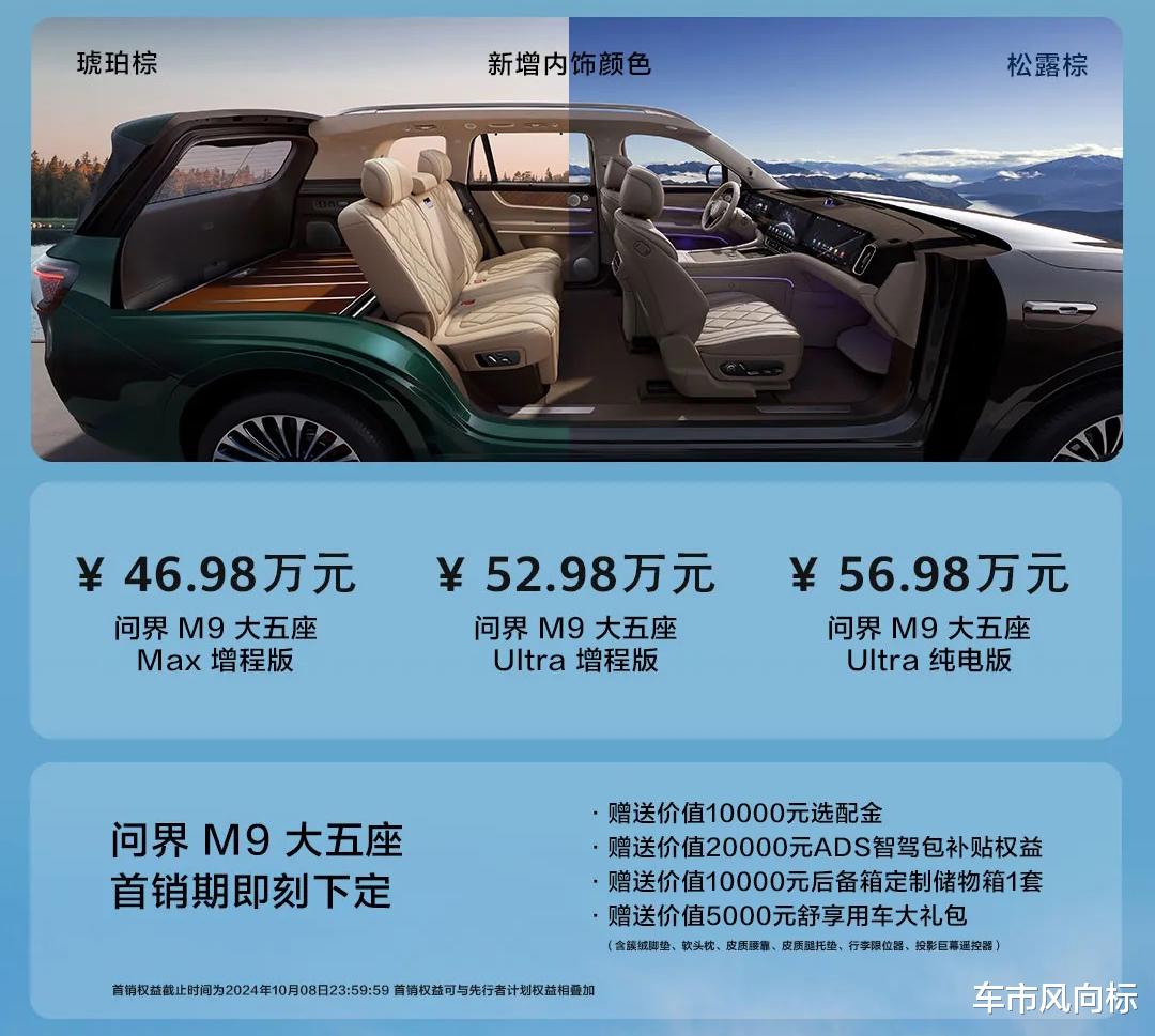 问界M9目前还处在消化订单状态中,但很显然,后续的订单增幅放缓了,未雨绸缪,可以避免订单消化完之后出现断崖式下滑的状态,提前布局新车型是很有必要的,所以,9月10日,AITO问界M9五座版正式上市了。