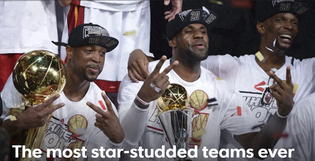 勒布朗·詹姆斯、德维恩·韦德和克里斯·波什三巨头联手,这是热火新王朝的开端。尽管他们的“巨星抱团”在当时引发了巨大争议,但他们依旧强硬地杀入总决赛。虽然最终惜败小牛,但这一赛季奠定了热火豪华舰队的基础。