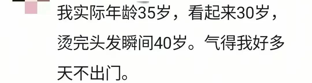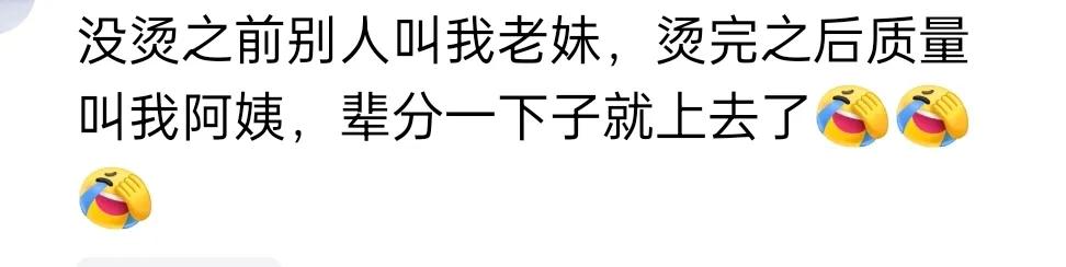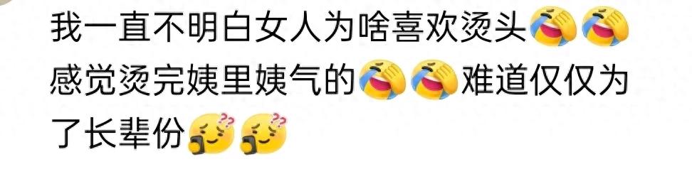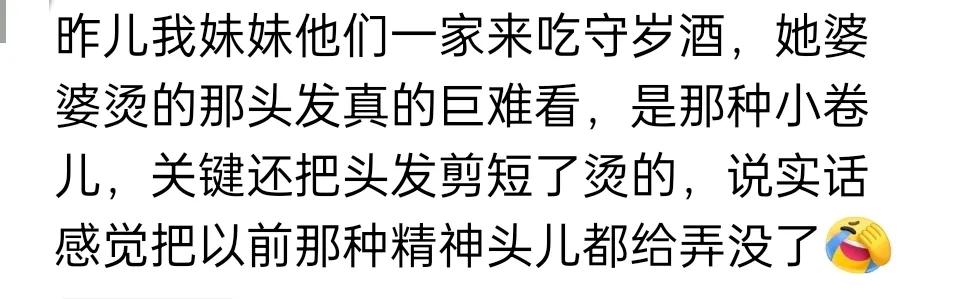 话说,每年过年的时候都想烫头发,每次烫完都后悔,感觉还没不收拾的时候好看本来想着能显年轻点,但是烫完更老了,辈分一下子上