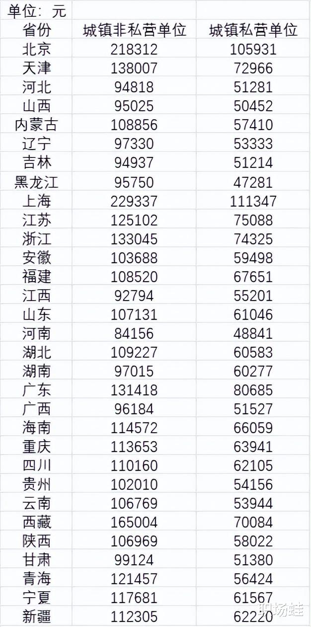 其实全国大致差不多,见下图统计局每年都公布的各省人均年收入数据。小城市体制外最惨,是因为绝对值最低,而一部Iphine万把块或者遥遥领先的三折叠2万块,不会因为你的城市小就便宜卖给你,你要买su7也一样不会在大城市价格上打五折卖给你。