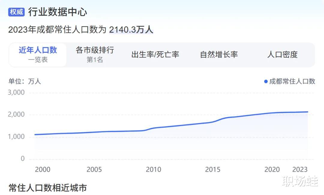 标题中将成都改成武汉、长沙、合肥、郑州、西安、南昌等等,其实都差不多,算二线城市,加起来30来个,都是当地尤其本省的经济重心,平均人口1000万,这么一算就有大致3亿人生活在省会城市。这个数字不可谓不庞大,而且越来越多的人毕业后前往省会,可以说省会城市是中国区域经济的中流砥柱。