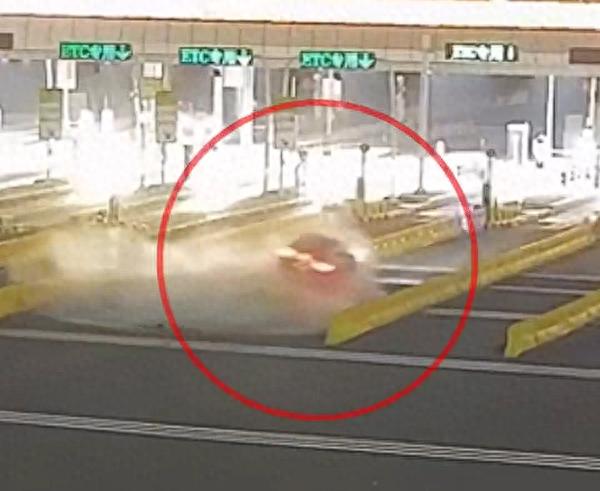 交警调取监控和行车记录仪发现,该车在驶近出站口时速度为100km/h,丝毫未减速撞上了水马,幸运的是车上商人都系了安全带,无人受伤。