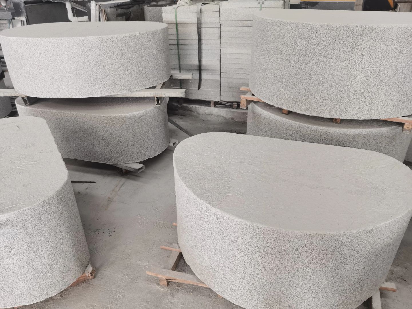 山东森杨石材有限公司就在山东临沂,当地是北方重要的石材集散地之一。他们做芝麻白有年头了,厂子不小,从矿山开采到成品加工一条龙。厂区内堆着成片的荒料,远远看着像一座小山,走近了能看到石头表面的颗粒感特别清晰,那种灰白相间的质感,就是典型的芝麻白特征。他们不只卖毛板,也能按图纸加工异形,比如路边石、台阶、罗马柱之类的,定制能力还行。