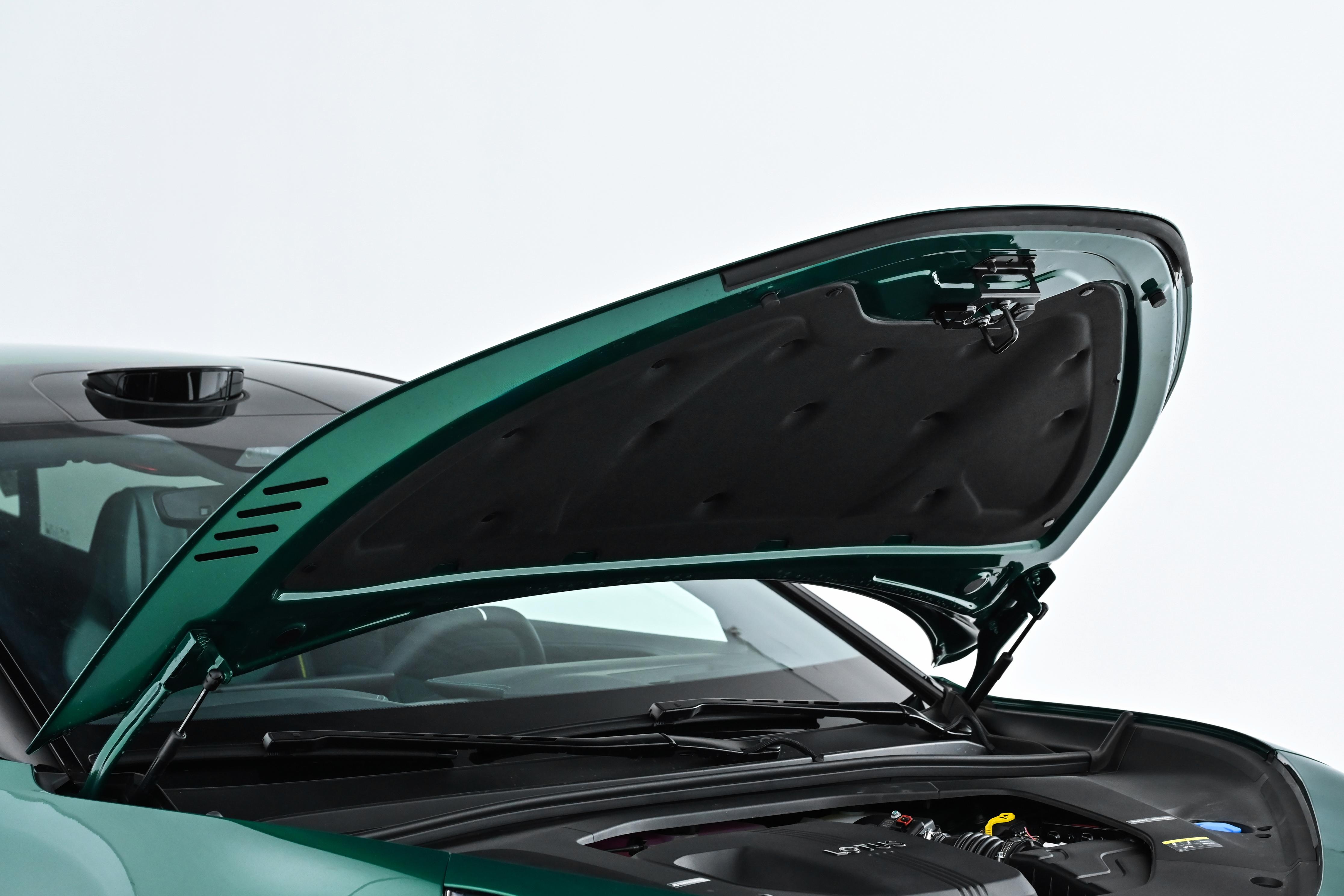 侧面才是重头戏。轿跑SUV的溜背线条,悬浮式车顶配黑色饰条,一点不臃肿 。车门是隐藏式弹出把手,按一下就弹出来,科技感拉满,还能降风阻。最戳我的是无框车门,搭配双层夹胶玻璃,关车门时声音很沉,既有性能车的范儿,日常用也不廉价 。车身侧面有4组8条Race-Aero风道,不是随便挖的孔,都是真空气动力学设计,跑起来能帮着压车身。轮毂选的20英寸熏黑双五辐款,里面藏着Brembo六活塞红色卡钳,光看就知道不简单。