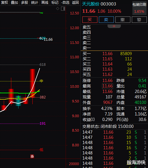 从技术面上来看,天元股份(003003)该股在板块的带动下,2天2板!2个交易日股价上涨了21%!均线呈现多头排列,MACD有继续上扬的动力,主力资金净流入1148.8万元。