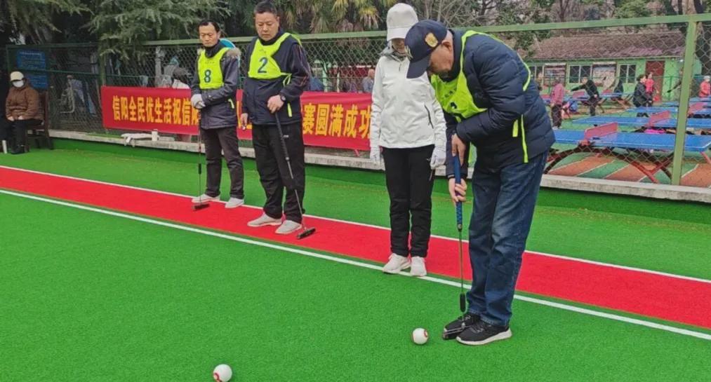 门球是集体力、技能和智力于一体的综合运动,深受老年群体的喜爱。虽然参赛的老人们都已年过花甲,但比赛现场仍然精神焕发,挥杆对垒时沉着冷静,弯腰击球身手矫健,精彩的比赛迎来观众阵阵喝彩,充分展现“夕阳红”的活力。