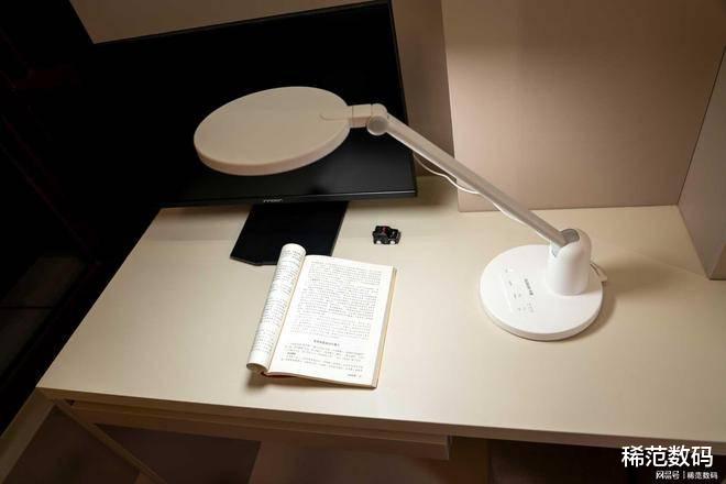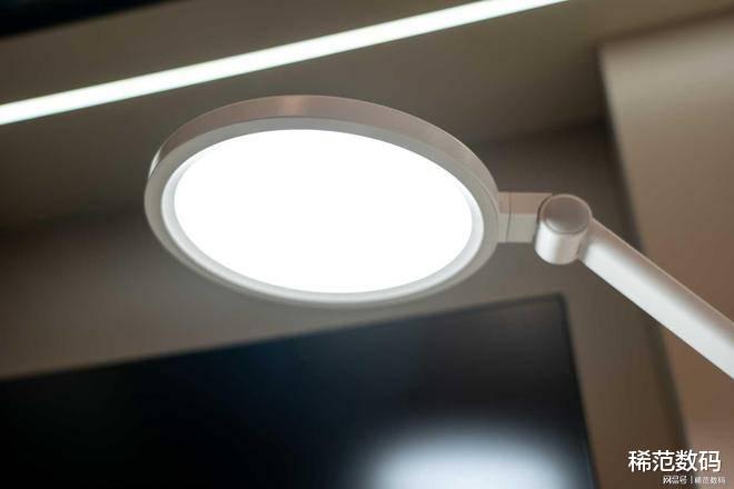 灯盘的材质也经过了精心打磨,在未点亮时呈现出均匀的磨砂效果,我用手触摸,能感受到细腻而温润的质感。而且灯盘极其稳重,可以随意的移动和摆放,加上灵活的灯臂调节,效果扛扛。这让在我辅导孩子写作业时感受尤为明显。无论孩子坐姿如何调整,光线总能完美覆盖整个作业区域,并可以精准的避开光线直视孩子的眼睛。