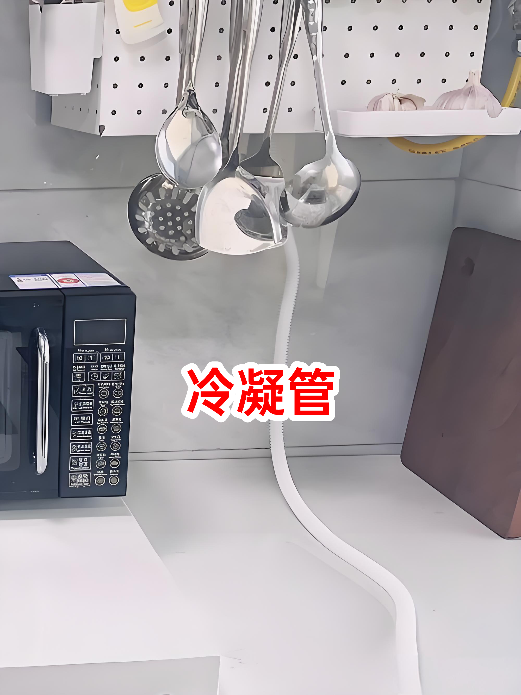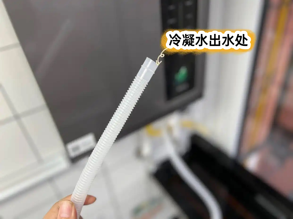 如果下面是台面,还需要再开洞,首先是不美观。如果附近有下水管,那么直接冷凝管接排水管,就好了。但如果不巧,排水管比较远,就要接好长的管子。