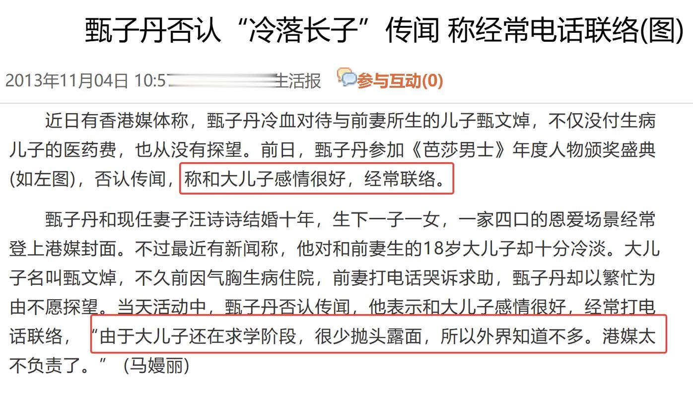 这与他一贯的慈父形象落差极大,也因此遭受了舆论的谴责,指责他对大儿子不闻不问。甄子丹也做出了回应,说他并没有冷落大儿子,父子感情很好,经常联络。