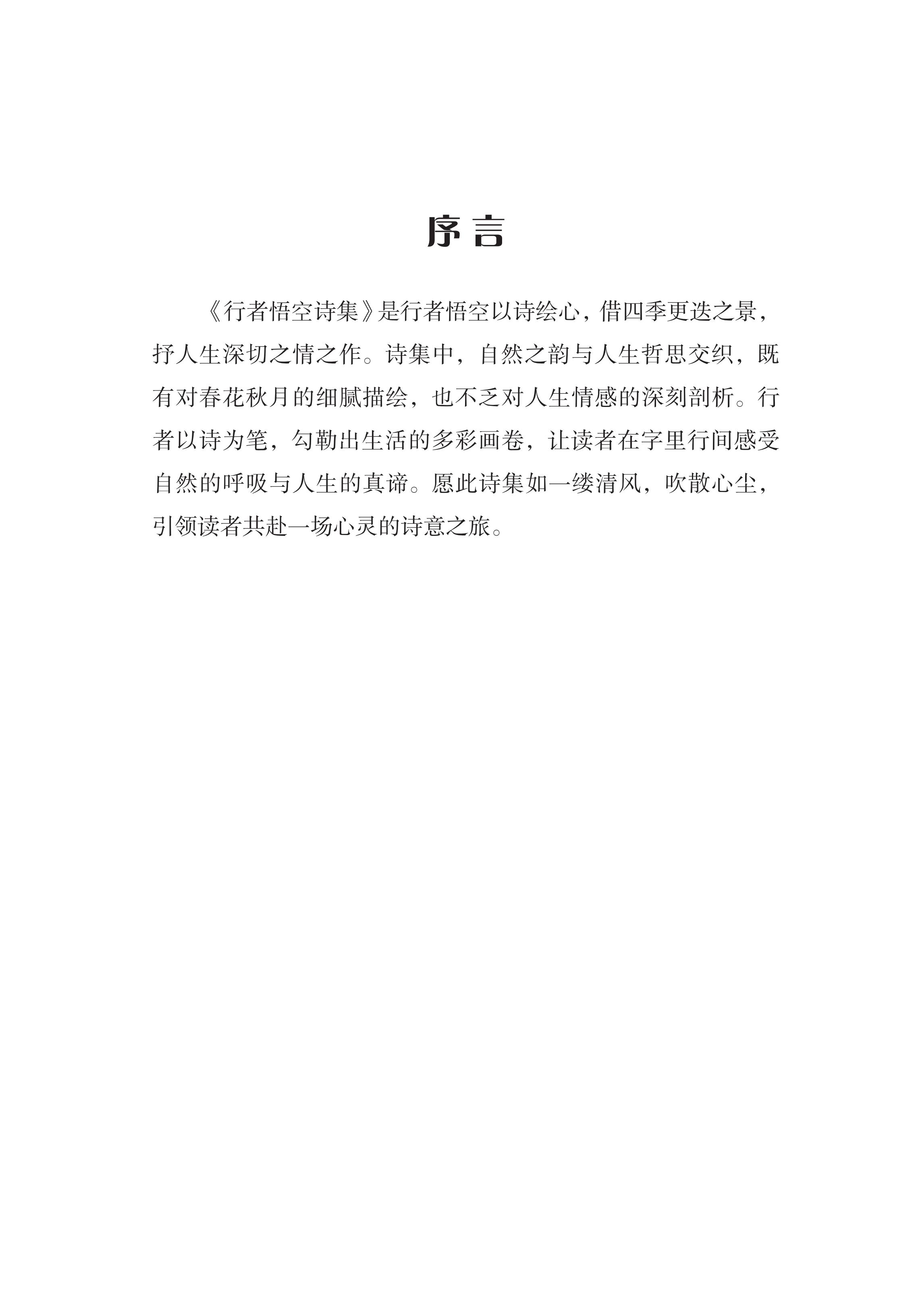 在这个需要诗意滋养的时代,《行者悟空诗集》如同一把打开心灵之门的钥匙,邀请每位读者在字里行间寻找属于自己的诗意栖息地。让我们随行者悟空的笔触,开启这场跨越四季的心灵之旅,在诗歌中找到面对生活的智慧与勇气。