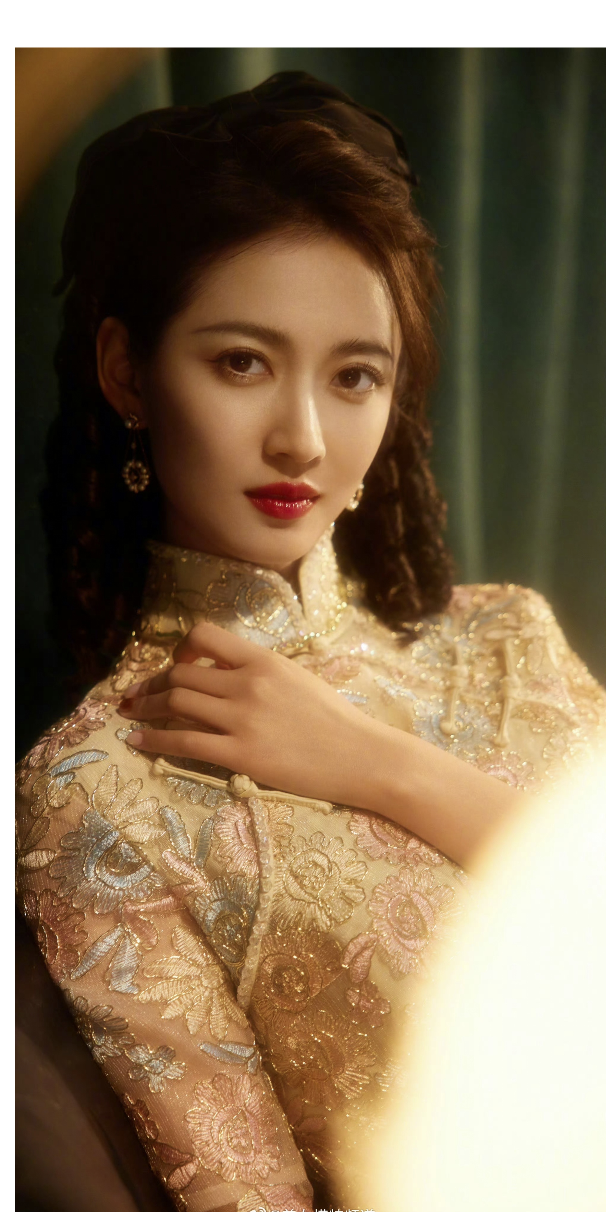 若说贾静雯的美是“鲜妍的活”,陈钰琪的美便是“静雅的柔”。她们同是圆眼秀鼻,同有舒展的眉眼,却一个像盛放的海棠,热烈明艳;一个像初绽的茉莉,淡香萦怀。这组写真里的她,把这份静美揉进了复古的骨血里:旗袍的织金是她的底色,昏光是她的留白,连那盏老台灯的光晕,都成了她美里的注脚。她不必做谁的复刻,因为她的温婉是独一份的——是旧时光里不慌不忙的舒展,是静立处自有的风骨,是即便在昏光里,也像月光一样,温温柔柔地落进人心底。