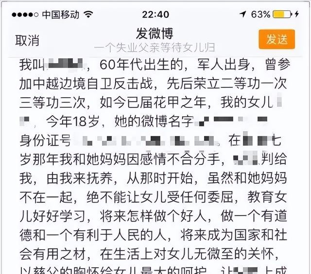 就在这时,女儿的同学提供了一条线索,让他最终找到了女儿的私人微博,而微博中的内容却让他大吃一惊。