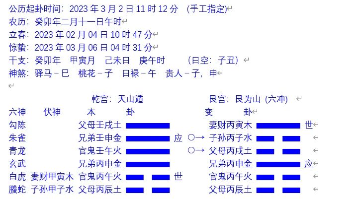 第二卦,于癸卯年甲寅月己未日庚午时问得山雷颐之雷地豫。