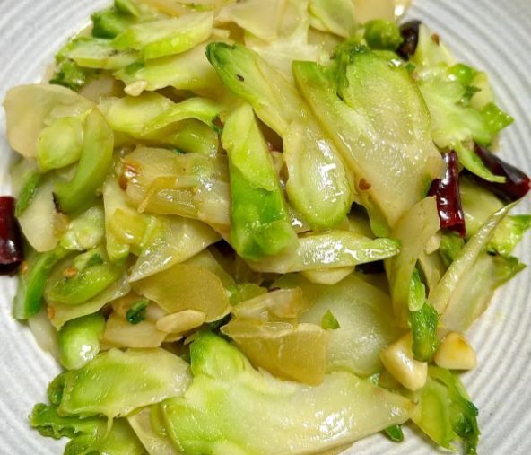准备几瓣大蒜,拍碎即可,不必切得过于细碎,以求在热油中能激发出更浓郁的香气。干辣椒则依口味而定,剪成小段,备以添一抹若有似无的椒香。铁锅烧热,倒入适量的菜籽油。菜籽油独特的香气,与川式小炒是绝配。待油温升起,微微泛起波纹时,先将拍散的蒜瓣与干辣椒段投入锅中。只听“刺啦”一声,辛香的气息便瞬间被热油激发,弥漫开来。此刻,将沥干水分的儿菜片倾入锅中,快速翻炒,让每一片儿菜都均匀地裹上油脂与蒜香。