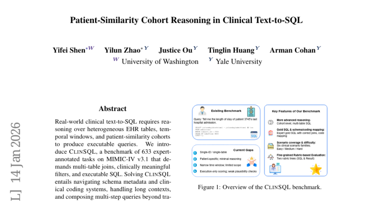 这项由华盛顿大学和耶鲁大学联合开展的研究发表于2026年,论文编号为arXiv:2601.09876v1。研究团队针对医疗数据库查询这一关键问题,构建了一个名为CLINSQL的全新评估体系,专门测试人工智能模型在处理复杂医疗数据时的真实能力。