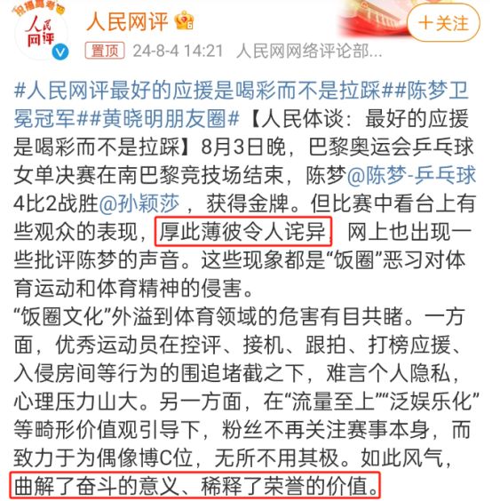 对偶像的爱往往是把双刃剑,就象巴黎奥运会,如果现场没有一边倒都是支持孙颖莎的球迷,相信鹿死谁手还真不一定,毕竟,在更多的比赛中,孙颖莎的胜率更高。