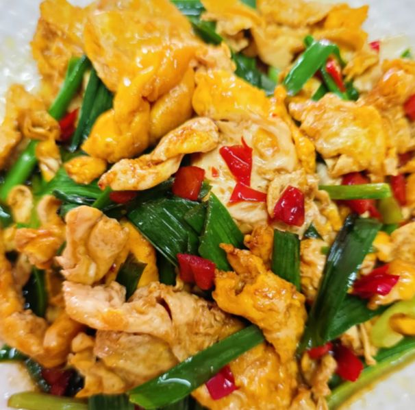 做法其实不复杂,关键在于手速和火候。锅要烧得够热,油比平时炒菜稍微多一点点,油温上来后,把鸡蛋一个个磕进去,趁着蛋白还没完全凝固,用锅铲快速划散,让蛋液凝成大块。这时候,剁椒或者干辣椒段可以下锅了,借着底油煸出辣味,和鸡蛋翻炒均匀。醋一定要沿着锅边淋,高温才能激发出醋的香味,而不是单纯留下酸味。最后撒上葱花,一点点白糖提鲜,不用其他多余的调料,快速出锅装盘。