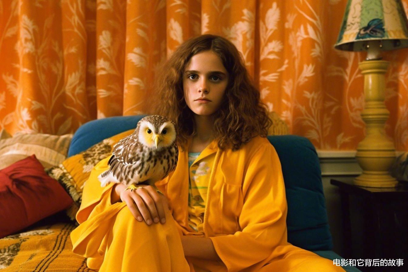 除了蒂姆·波顿的暗黑哥特版,俄罗斯设计师kinly808则用AI技术做出了另一种截然不同的《哈利·波特》:让角色们走进韦斯·安德森的马卡龙色系的梦幻世界——当然,得配上一副厌世脸。