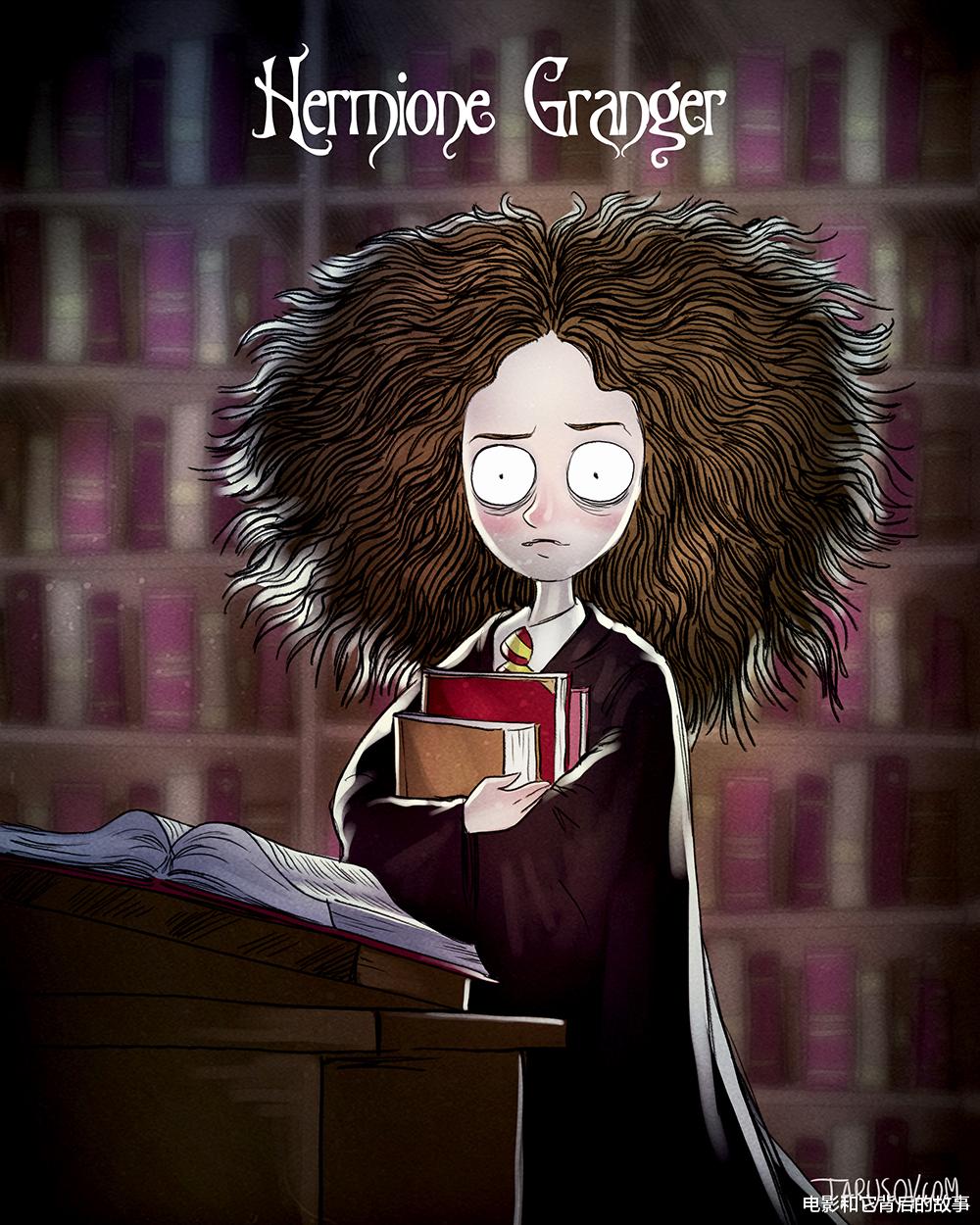 哥特版的赫敏可能相比经典的艾玛·沃森版更符合原著的设定:顶着一头乱发、貌不惊人的少女书呆子。