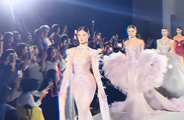 “哇——”现场观众的惊叹声此起彼伏,仿佛海浪般一波接着一波,几乎要将T台淹没。手机的快门声响成一片,每个人都迫不及待地想要记录下这令人震撼的美丽瞬间。