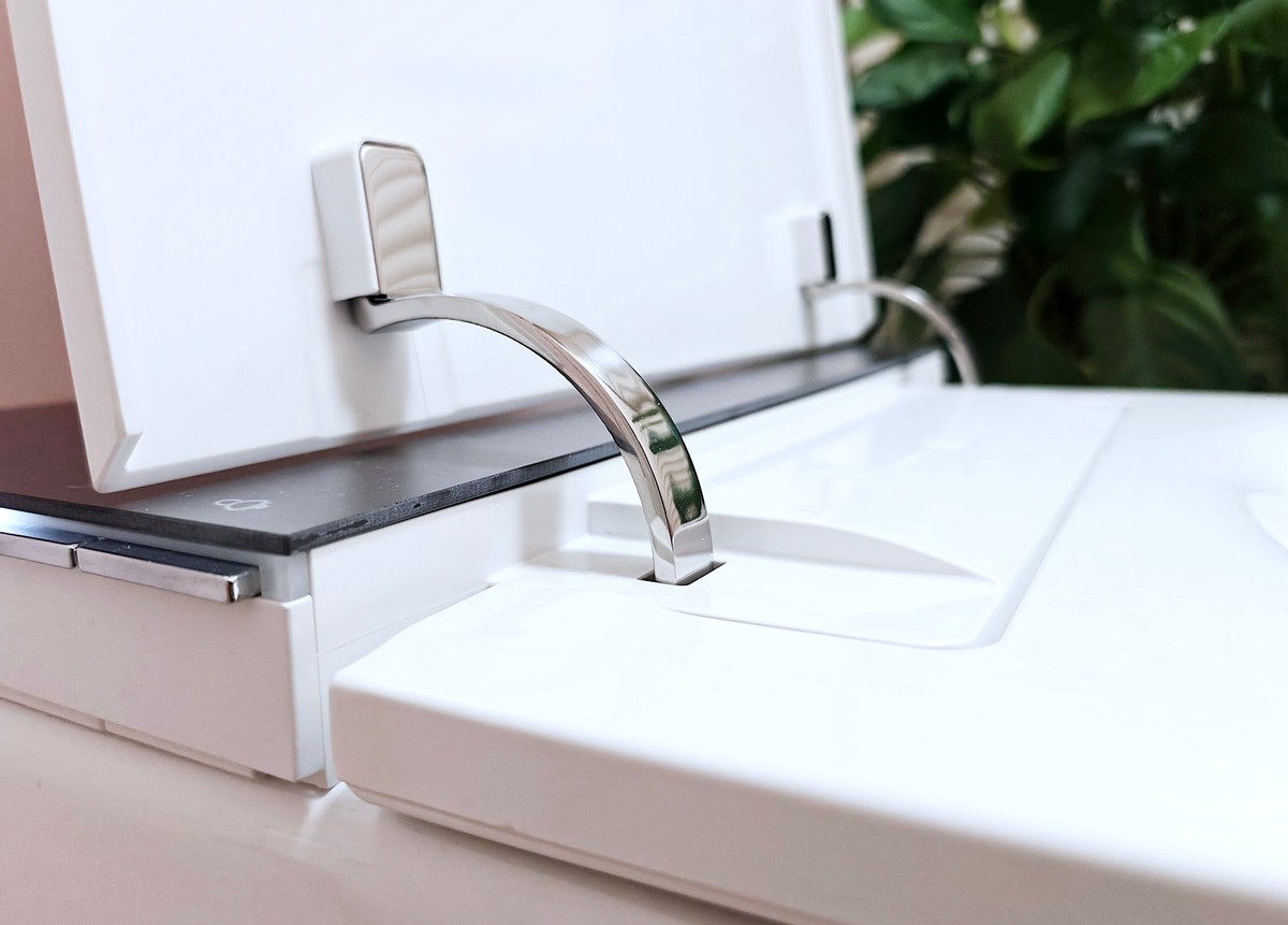 在小鲸洗智能马桶 U9的顶部,有一个显示区,这里可以看到一些马桶的运行状态,有座温温度显示。因为小鲸洗智能马桶 U9是支持座圈加热的,这样冬天坐上去也是暖暖的,不会冰屁股,夏天不需要座温可以关闭座温。而且冲洗的水是即热式的,健康又贴心。