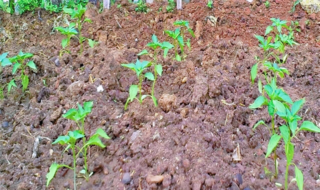 每棵辣椒苗之间的距离保持在40厘米到60厘米左右(大约是成人两个脚掌的距离)。