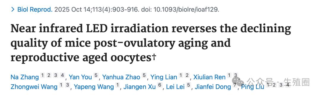 Near infrared LED irradiation reverses the declining quality of mice post-ovulatory aging and reproductive aged oocytes†. Biol Reprod. 2025 Oct 14;113(4):903-916. doi: 10.1093/biolre/ioaf129.