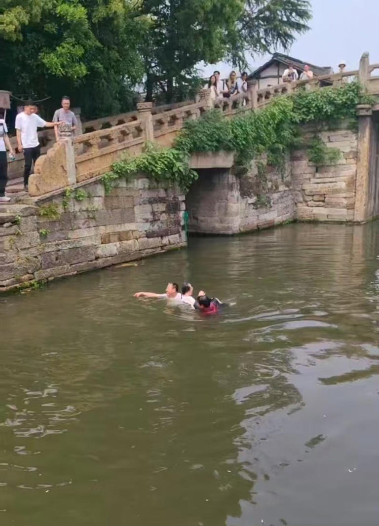 1.1 意外发生的 "黄金 5 分钟"4 月 20 日,正值周日,浙江绍兴的景点八字桥历史街区热闹非凡,游客如织。中午 11 时许,这里突发了一起意外事件,打破了原本的祥和与安宁。50 岁的陈建忠当时正在朋友工作室里准备吃午饭,突然听到屋外传来一阵嘈杂的喧哗声。出于好奇,他赶忙跑出门查看情况,眼前的一幕让他心头一紧:只见河里有个女孩正在拼命挣扎,岸上的围观者们焦急地大声呼救。