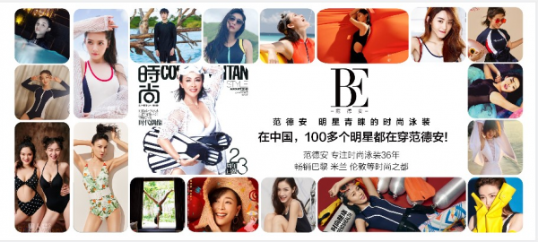 在中国,100多个明星都在穿范德安,众多时尚杂志主编也都曾推荐BE范德安时尚泳装,范德安在热门综艺中也有着超高的出镜率。