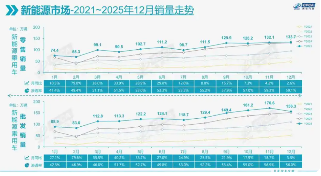 据乘联会数据显示,2025年全年乘用车零售达2374.4万辆,新能源渗透率创下突破53.9%的历史新高。