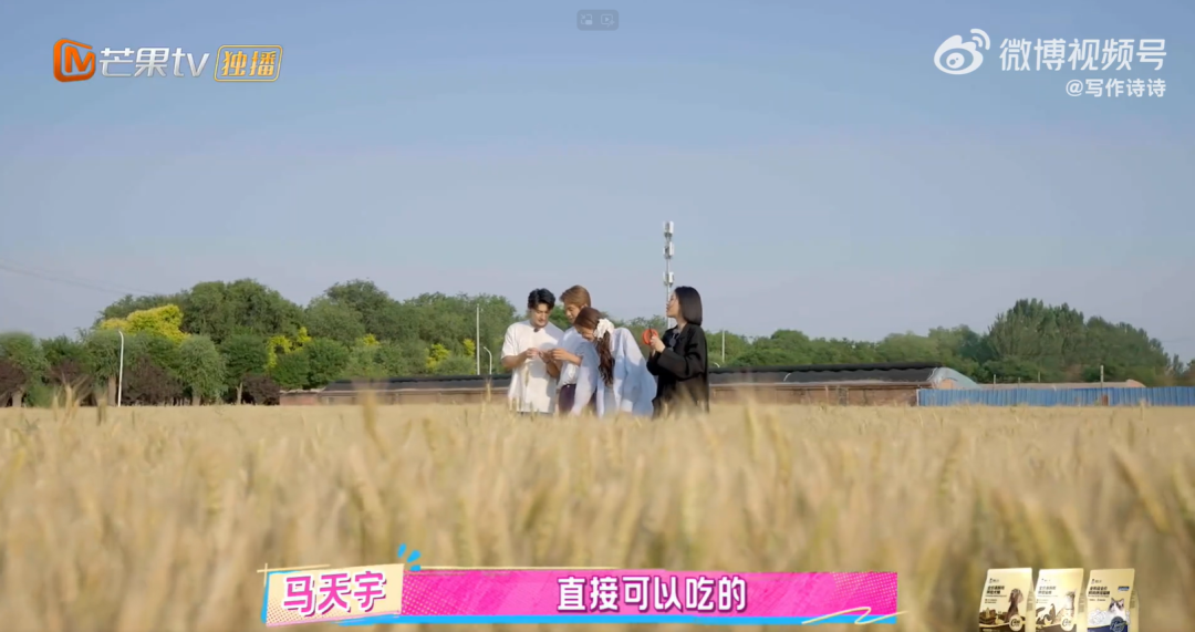 马天宇还走到麦田中间,熟练地掰了根麦穗,搓出里面的麦粒给大家看。