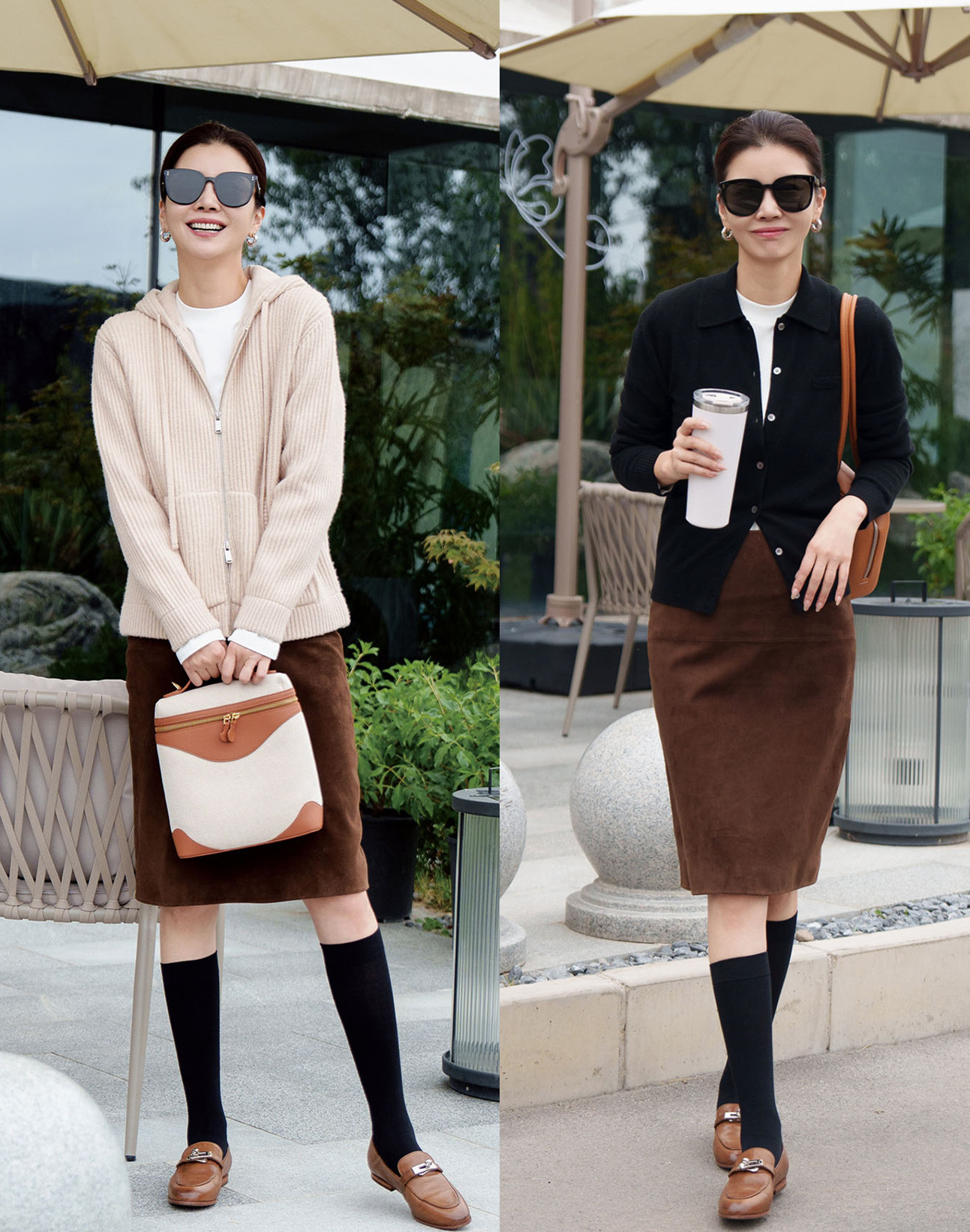 为了避免自己的穿搭,出现“老态感”,她们会借助羊毛衫的温柔属性,突出女性的柔美、与温婉气韵。