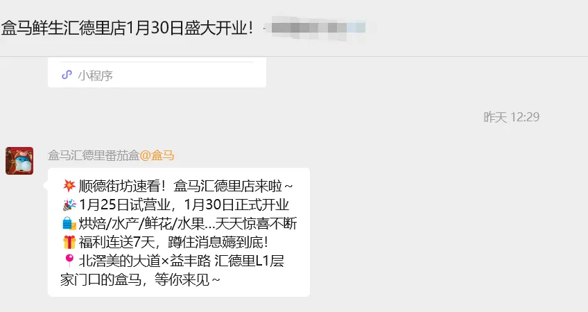 就在近日,楼市君收到消息,北滘盒马汇德里店将于1月25日试营业,1月30号正式开业。