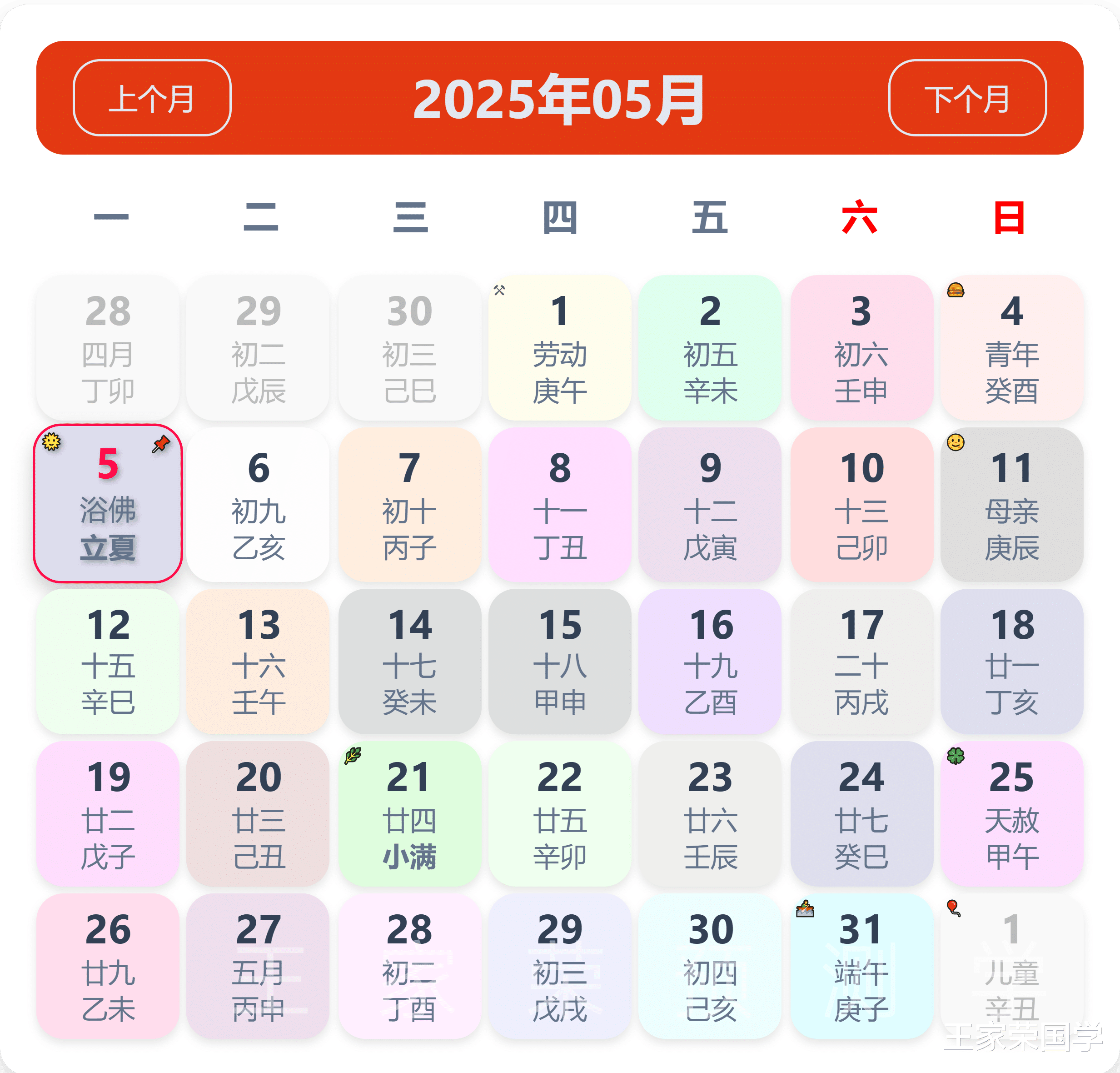 公历日期:2025年5月5日 星期一 ♉金牛座