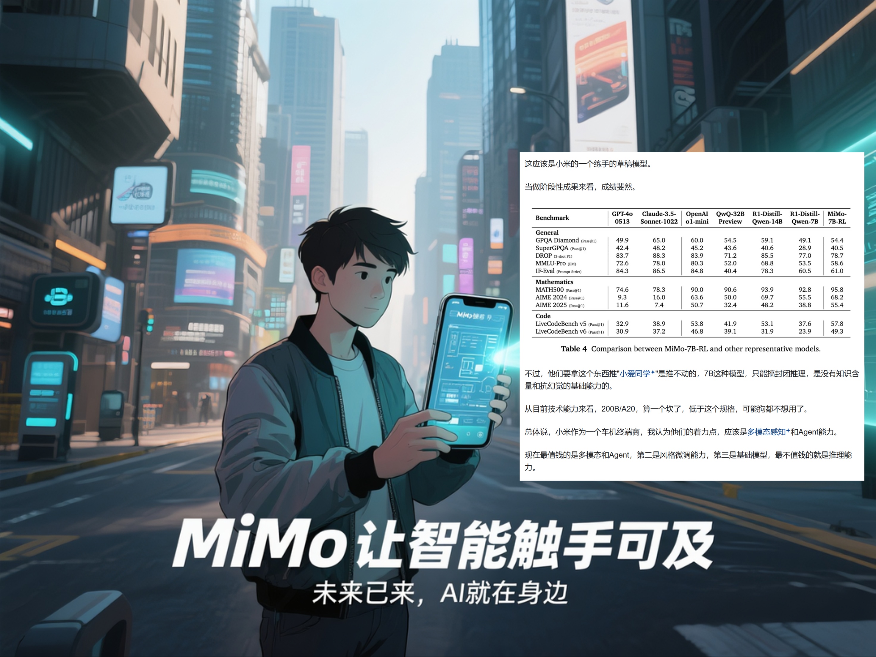 总结::来看小米MiMo的发布,不仅是技术的突破,更是中国AI产业自主创新的象征。它以高效的推理以及开源的策略,挑战了国际巨头的技术垄断,展现了中国科技企业在全球AI舞台上的崛起。未来随着更多应用场景的落地,MiMo有望成为推动智能设备普及和智能生活升级的关键力量。