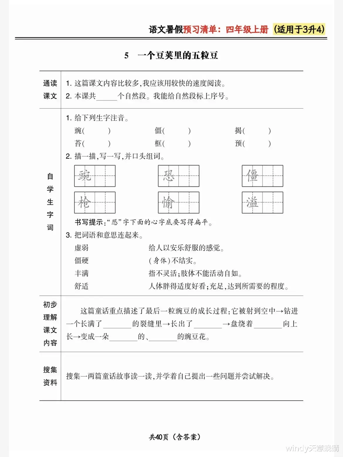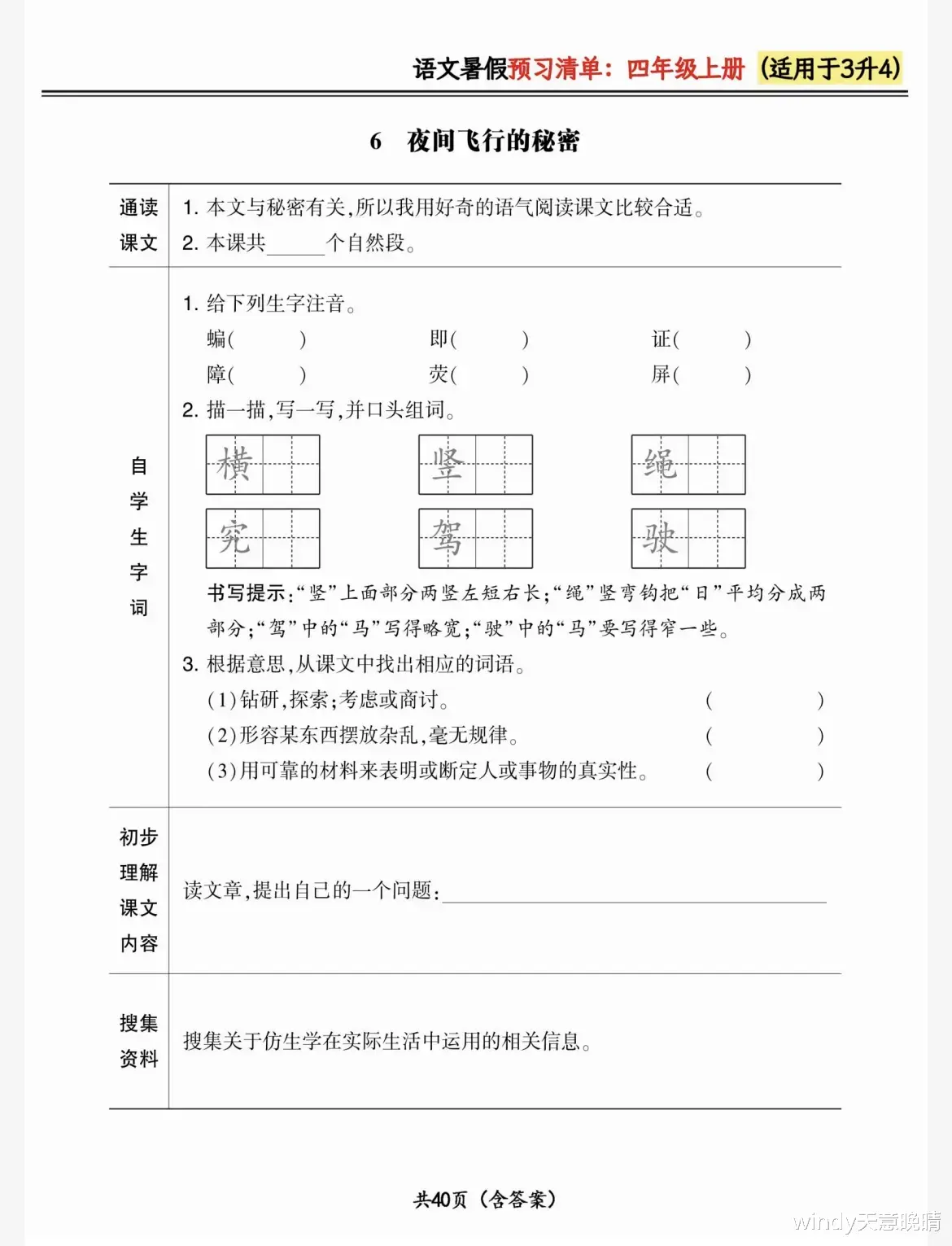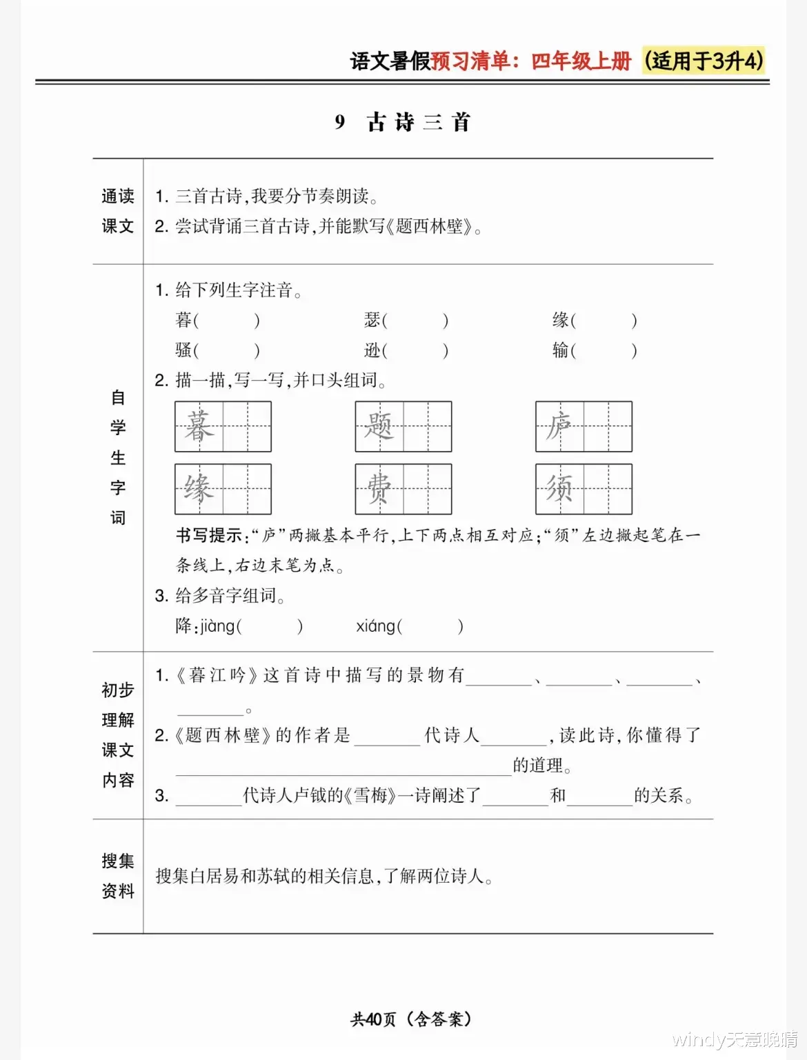 ✅ 预习四年级上册前3单元生字(标出易错笔顺,如“稻”“骤”)
