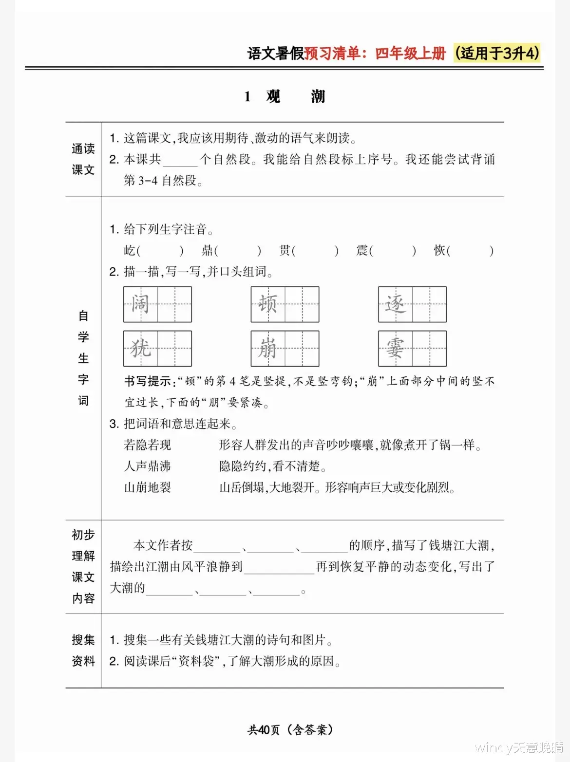 三升四的语文预习要 “重兴趣、轻压力”,通过生活化实践和短时高频训练,帮助孩子自然适应从“段落学习”到“篇章构建”的跨越。