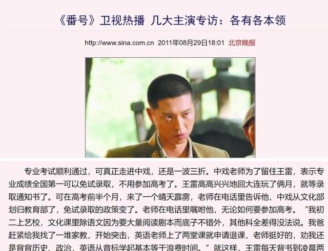 在母亲的支持下,王雷决心报考辽宁省艺术学校,并以优异的成绩考入中央戏剧学院。