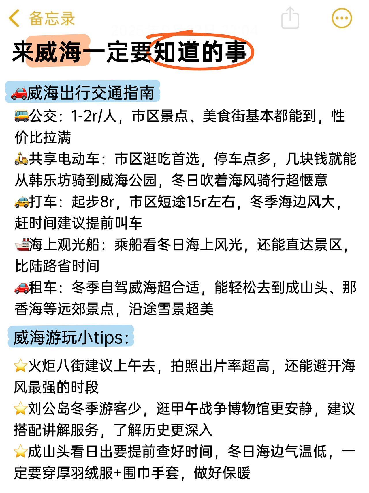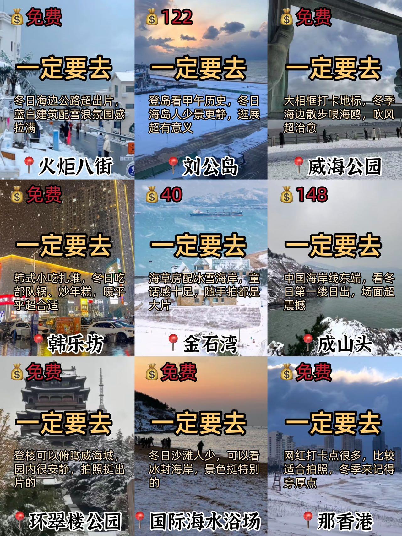 ⚠️敲重点:冬季威海海边风大,一定要带厚外套,围巾帽子也安排上,不然吹久了容易冻得慌❗❗
