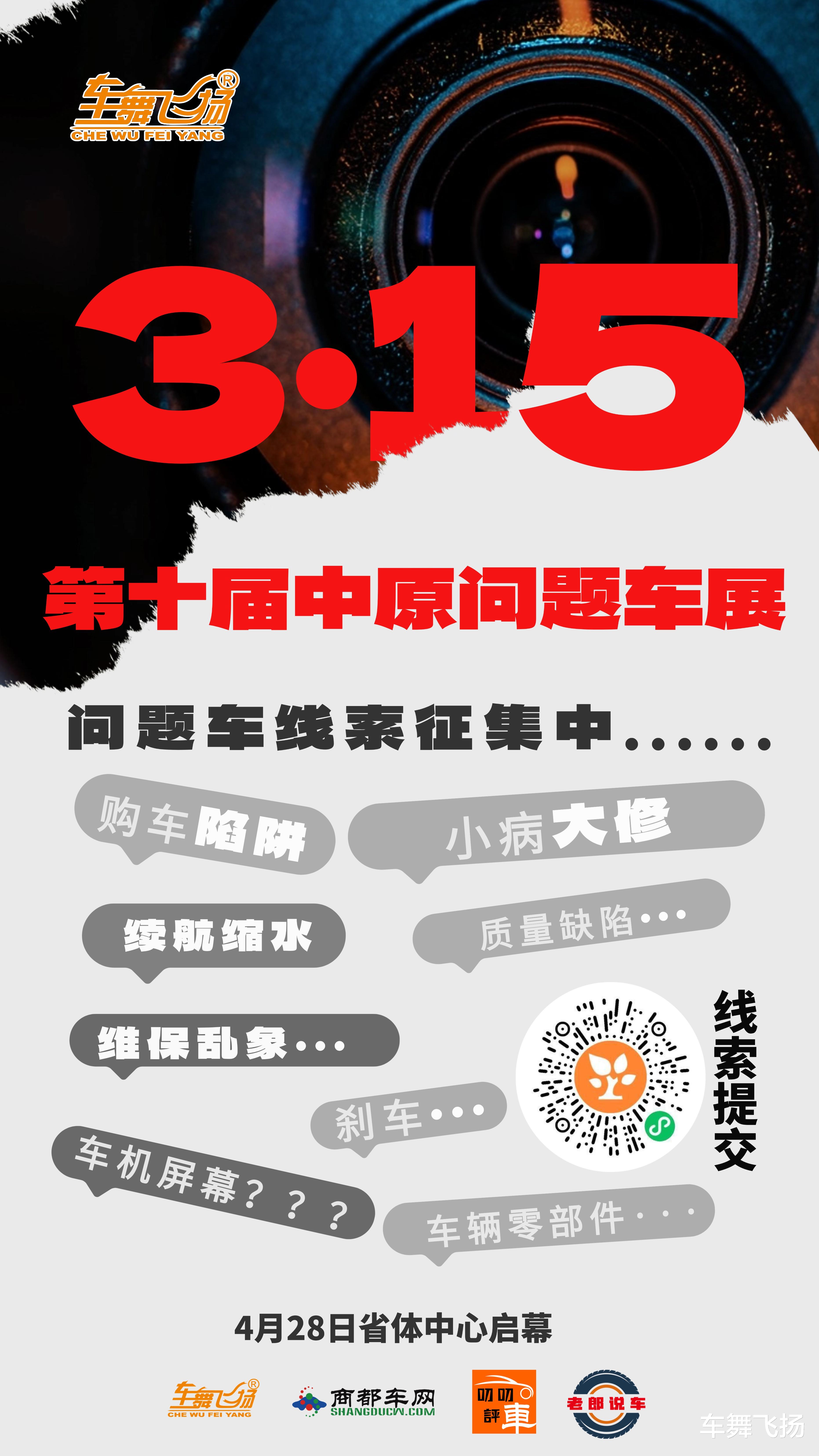 你有料我来爆,你有事,我来帮!第十届中原问题车展线索正在收集中。如果你的用车生活正在遭遇烦恼,不管是购车过程中的合同纠纷,还是用车过程中的动力系统故障、刹车问题、续航问题、又或者是售后维保过程中的小病大修等问题,你都可以积极的联系我们,依托行业优势媒体资源和平台流量赋能,积极建立消费者和厂商的沟通直联渠道,助力您的用车问题快速妥善解决。