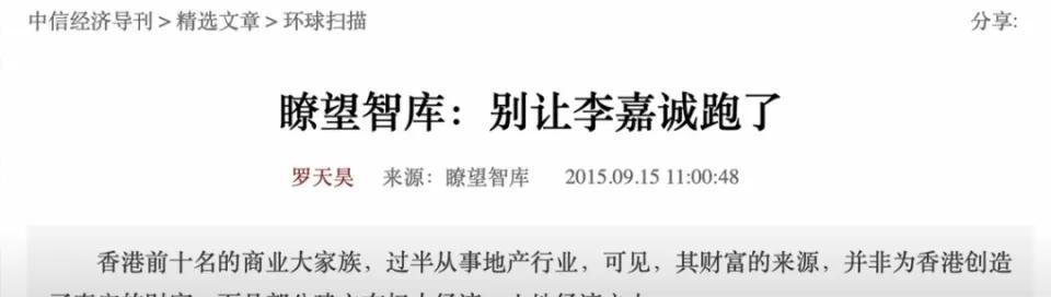 同时,2015年初,李嘉诚宣布对长江实业与和记黄埔进行结构调整,将其公司注册地由香港转移至开曼群岛和百慕大群岛等离岸金融枢纽。此举被许多人解读为“撤离中国市场”。当时,一篇题为《阻止李嘉诚撤离》的文章引起了广泛关注。