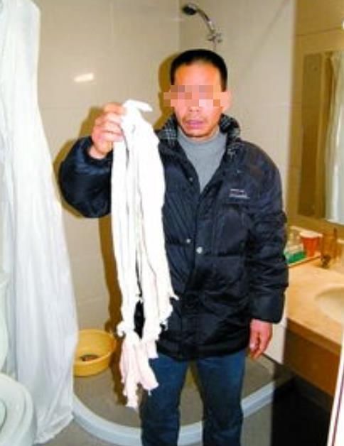 一条毛巾一端连接水龙头,另一端紧紧勒住她的脖子。