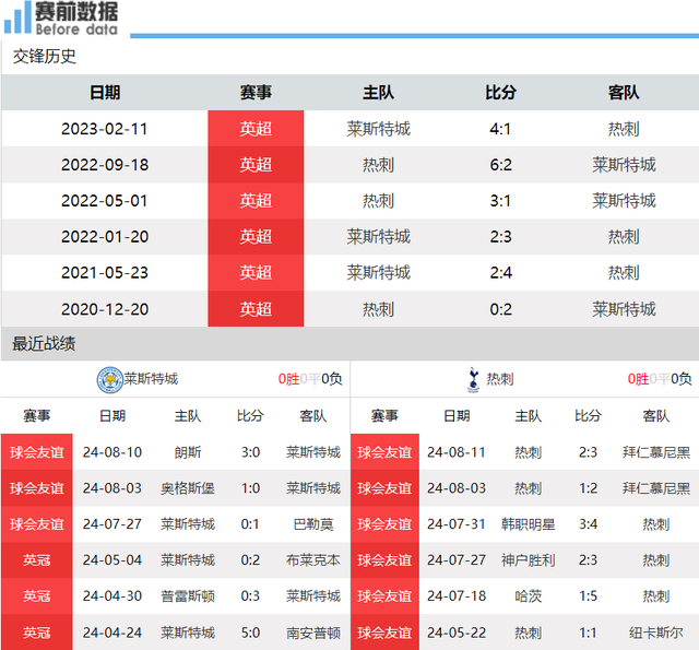 北京时间8月20日凌晨3时,英超2024-25赛季第1轮最后一场对决,升班马莱斯特城主场迎战热刺。