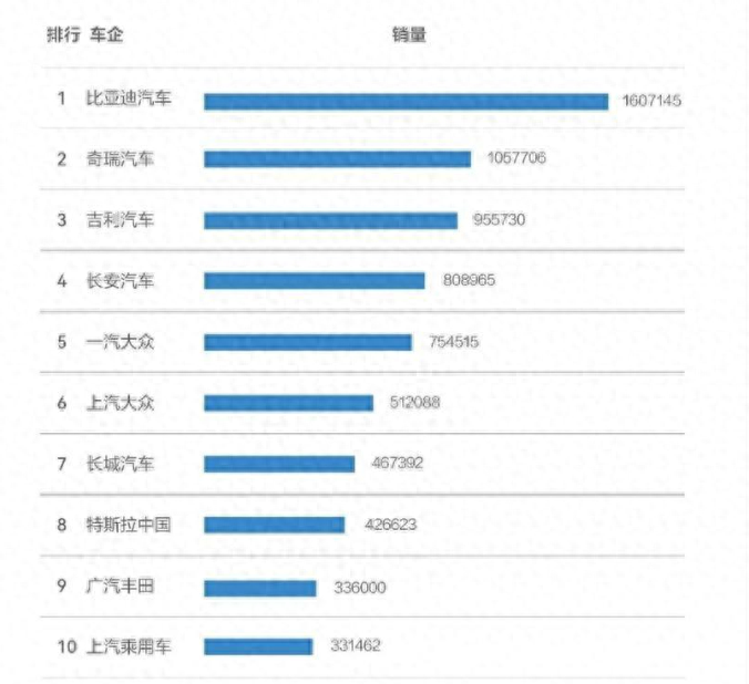 中国新能源汽车终于看到曙光了,比亚迪以一己之力,单挑南北大众,在2024年上半年批发销售榜单中以1607145辆的成绩拿下榜首,再次为中国汽车争光,而值得一提的是,在前十的榜单中,有6位来自中国自主品牌,中国新能源汽车表现出色,以后谁还敢说国产品牌干不过外企合资?