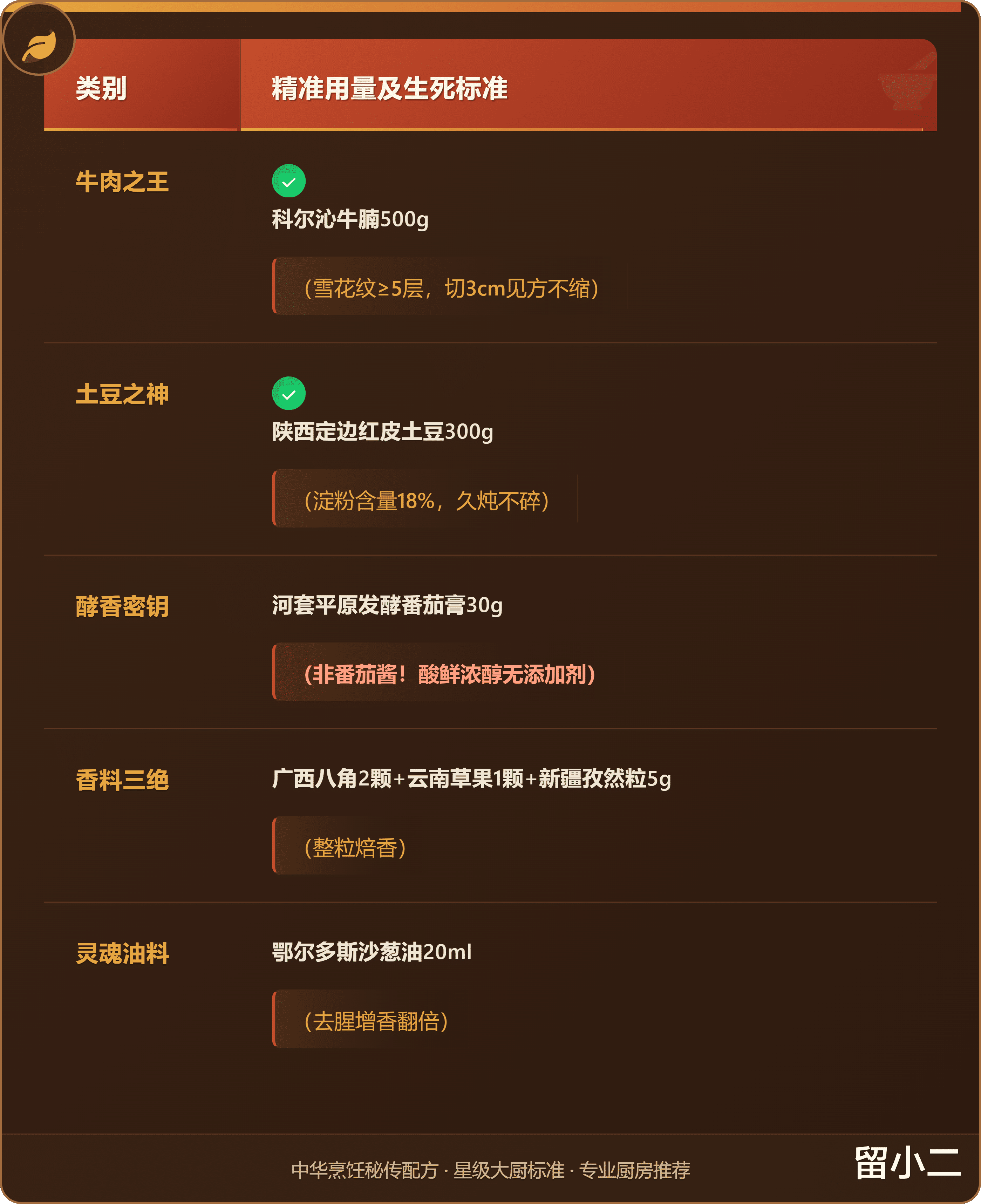 牛肉焯水后-18℃急冻15分钟(冰晶刺破纤维,加速酥烂),土豆泡海藻糖水(保形不裂)!起锅加黑松露酱3g——菌鲜替代味精,国宴禁用化学增鲜剂!